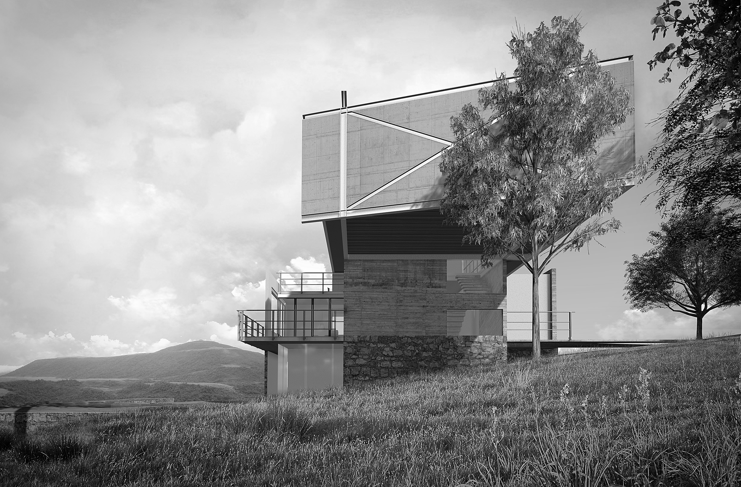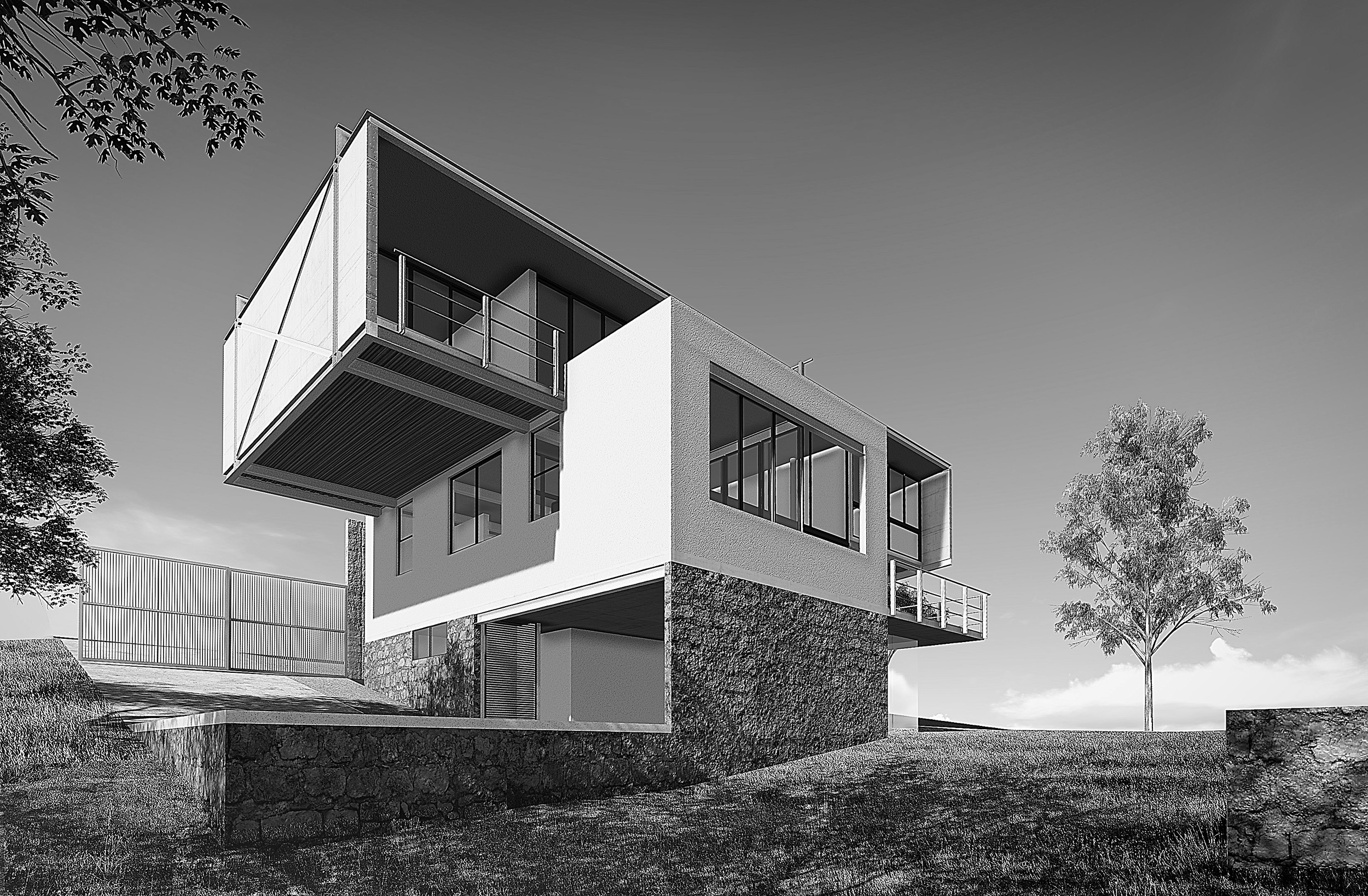 A implantação da residência na parte superior do terreno visa o melhor aproveitamento da vista, acima das copas das árvores com orientação das aberturas para sul e possibilita a edificação de futuras expansões na parte inferior do lote, sem comprometer a integridade da proposta.