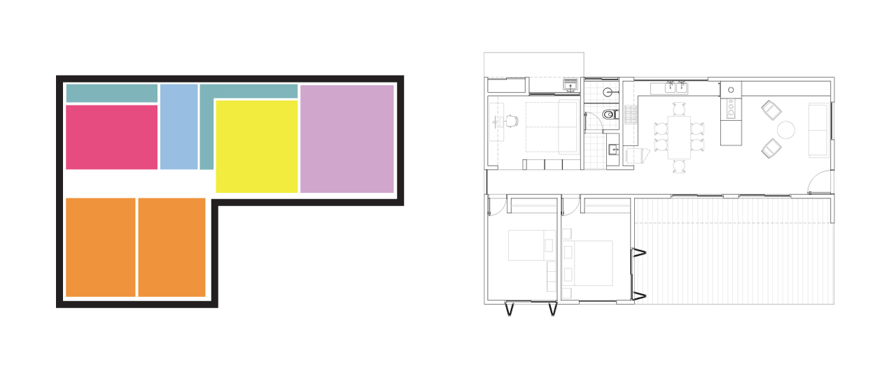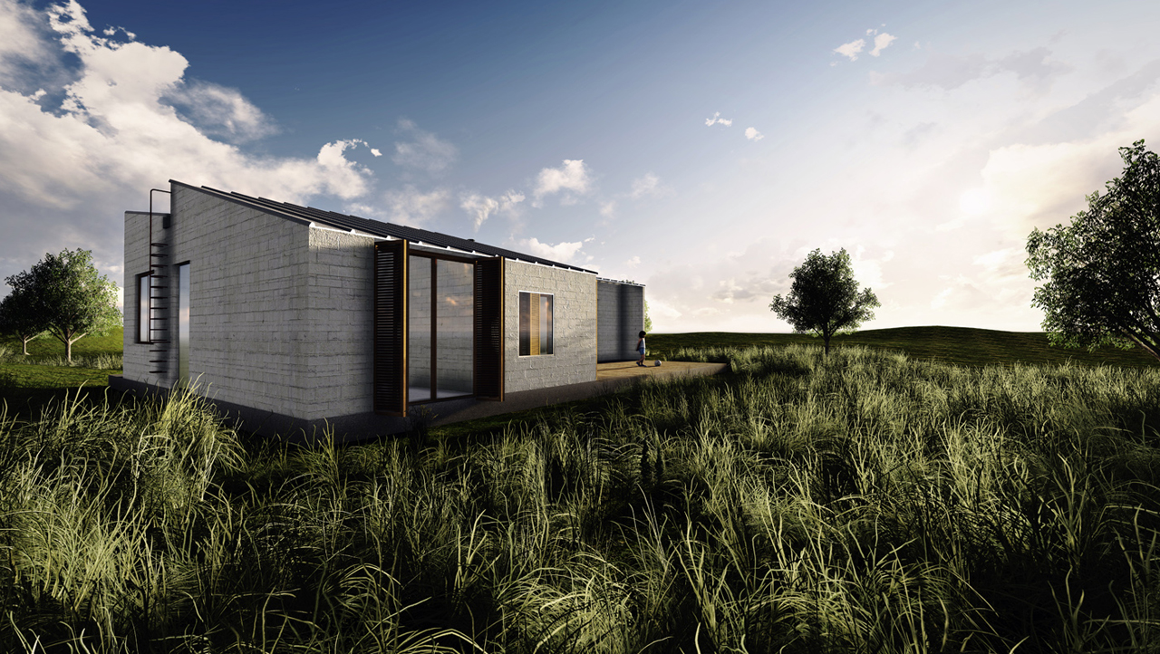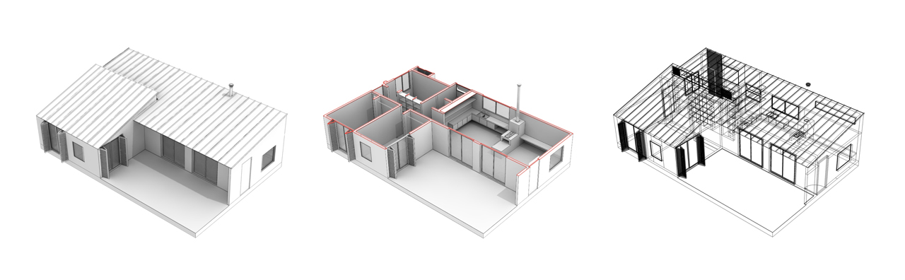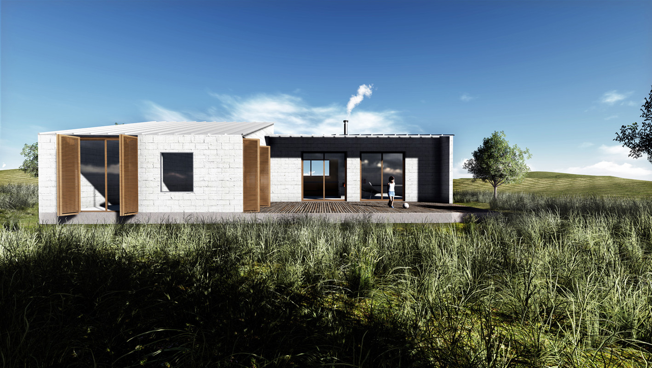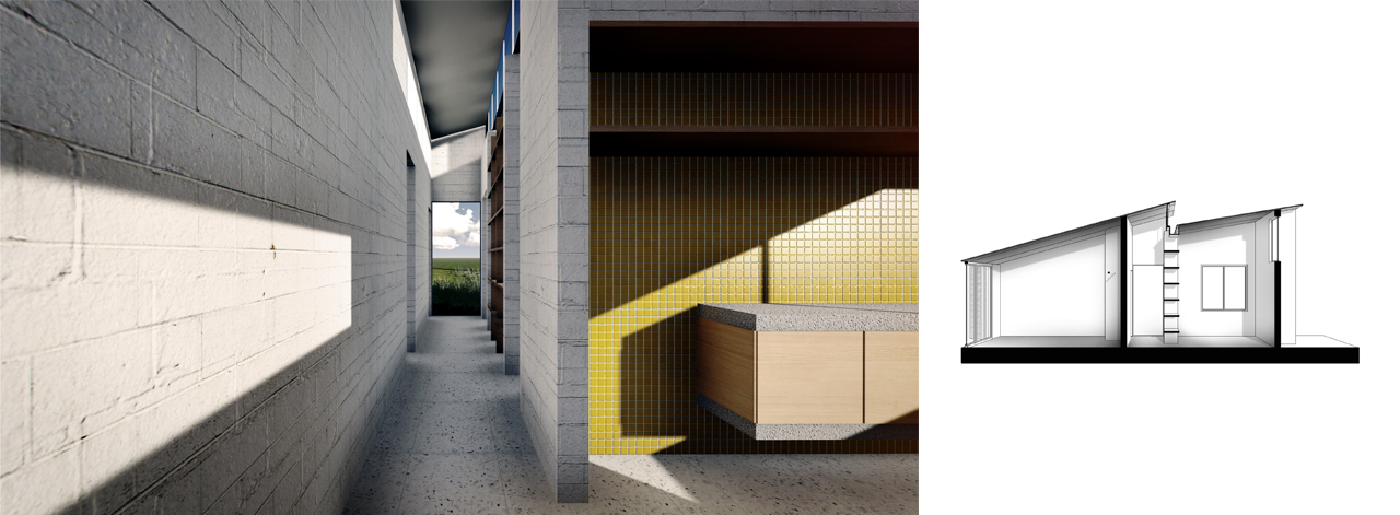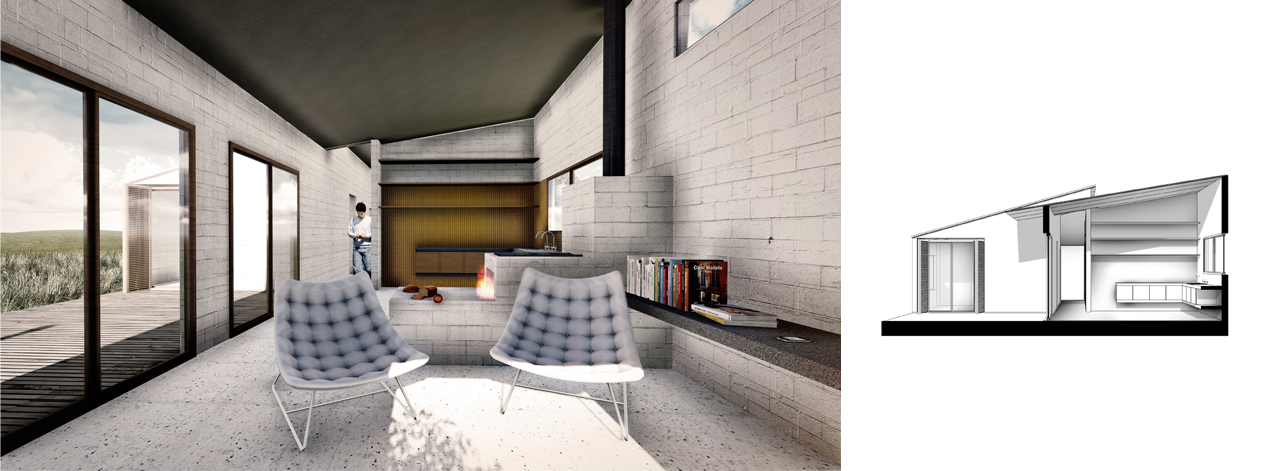 Esta pequena casa será implantada na Serra da Gandarela, área de importante preservação ambiental em Minas Gerais. Sua área e forma construtiva refletem o mínimo impacto à paisagem durante sua construção. A organização do programa se dá através de um grande eixo que articula o salão com sala de estar, jantar e cozinha com um fogão à lenha mineiro, que também aquecerá o ambiente durante as estações mais frias do ano. Os quartos ficam ao fundo, conformando uma implantação em L. O deck é o ponto de convergência entre os ambientes da proposta. Os telhados inclinados conformam, internamente, espaços confortáveis e dinâmicos. O shed, sobre a circulação, ilumina e areja esta área de transição da residência. O método construtivo escolhido foi o bloco de concreto cru, com revestimento somente nas áreas molhadas. As grandes aberturas buscam explorar a integração com o entorno e criar diferentes jogos de luz e sombra em cada ambiente proposto.