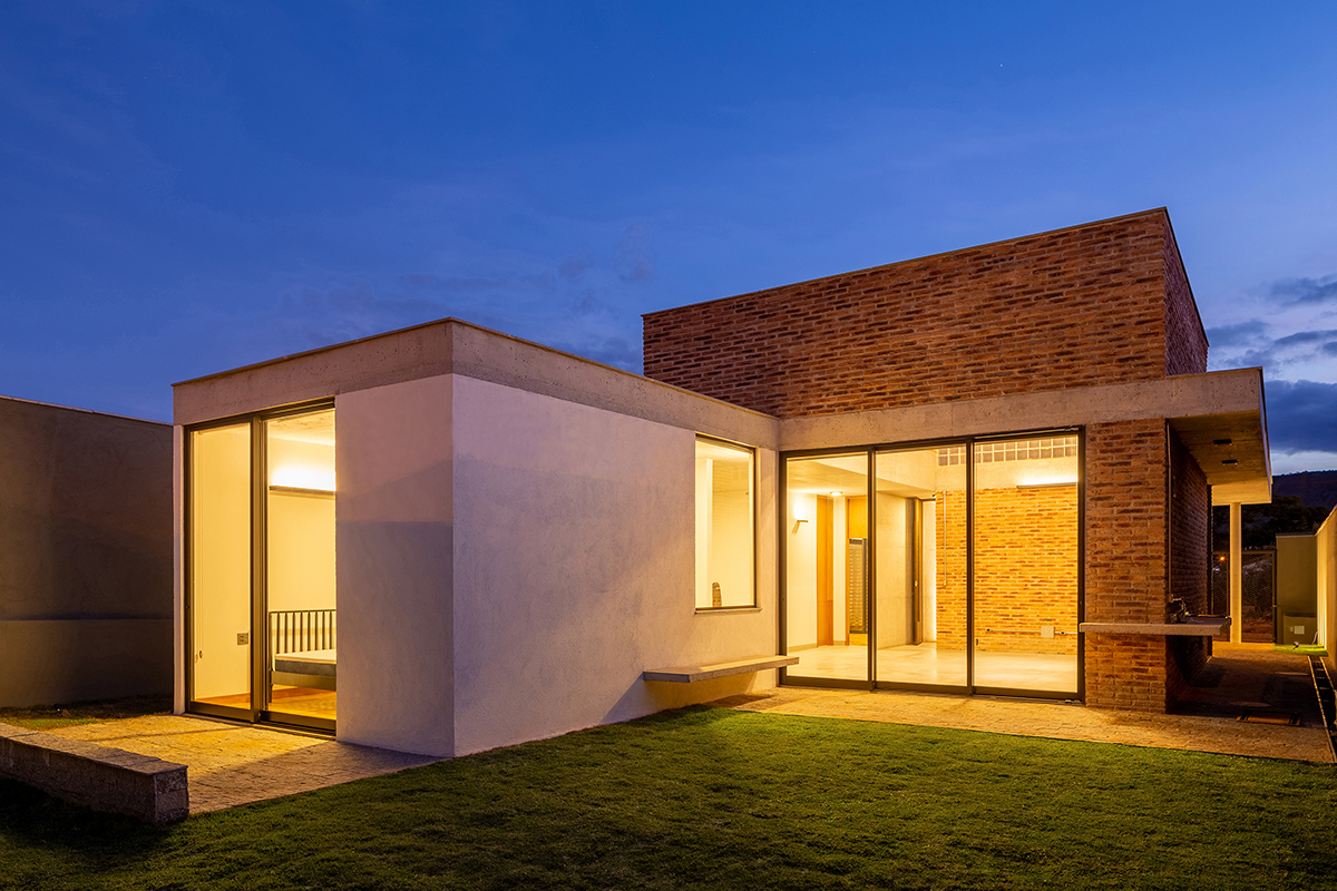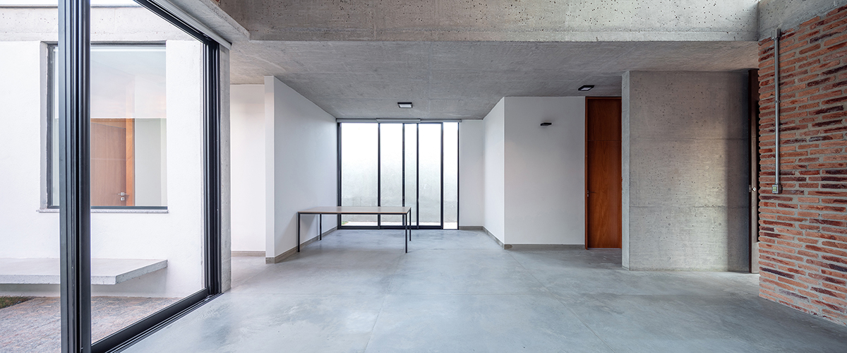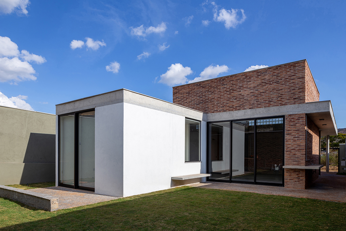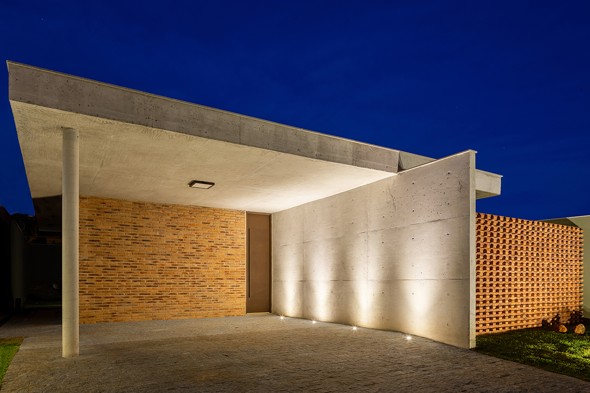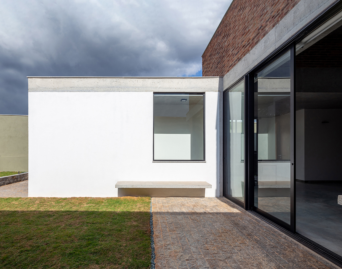 As noções de pátio e varanda norteiam a concepção do projeto, de maneira que todos os cômodos são integrados e têm acesso à área externa. A sala de estar integrada à cozinha configura o espaço central da casa, com pé direito maior, fechado para a fachada da rua e aberto para o pátio principal, de forma que a casa é ampliada em dias de eventos familiares ou refeições ao ar livre.