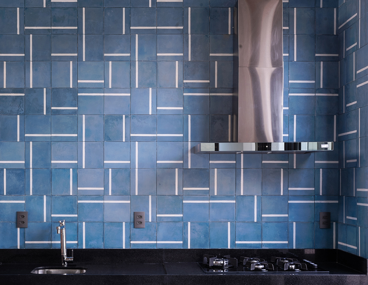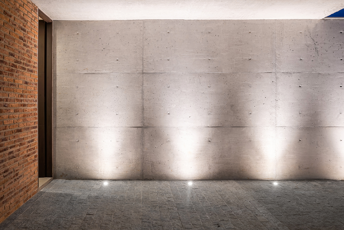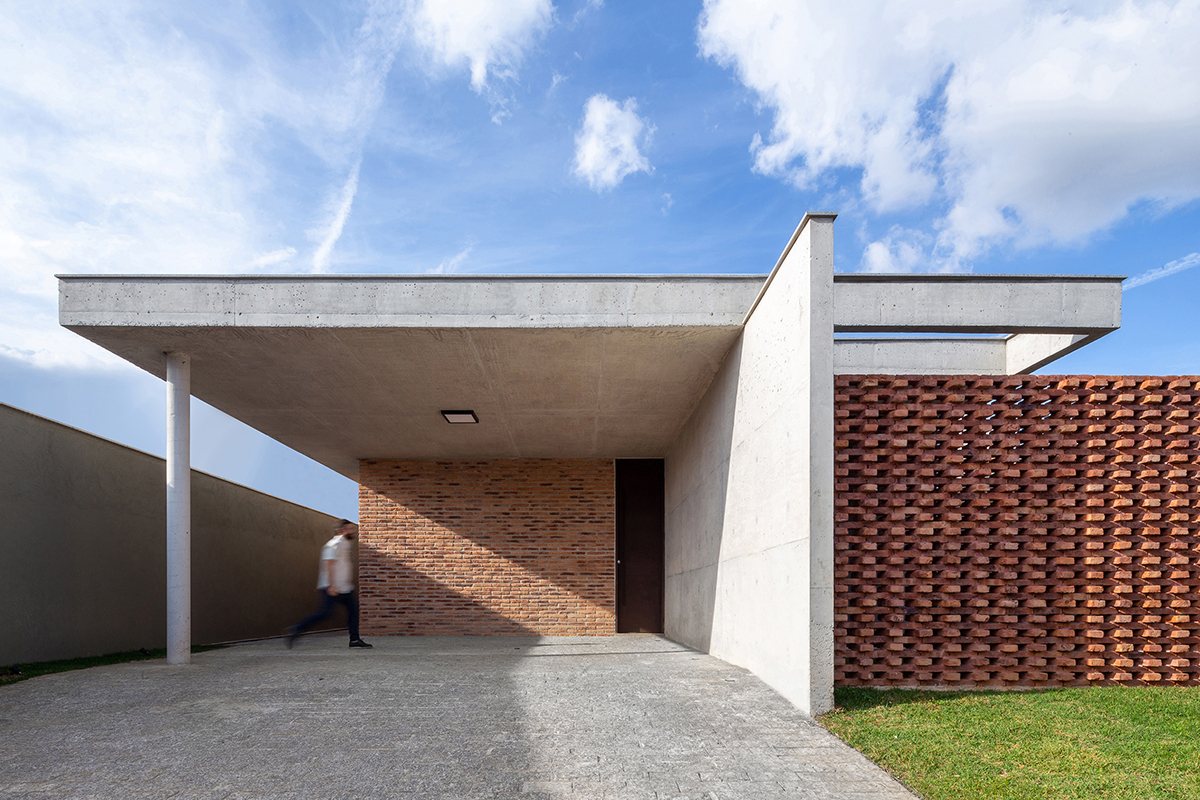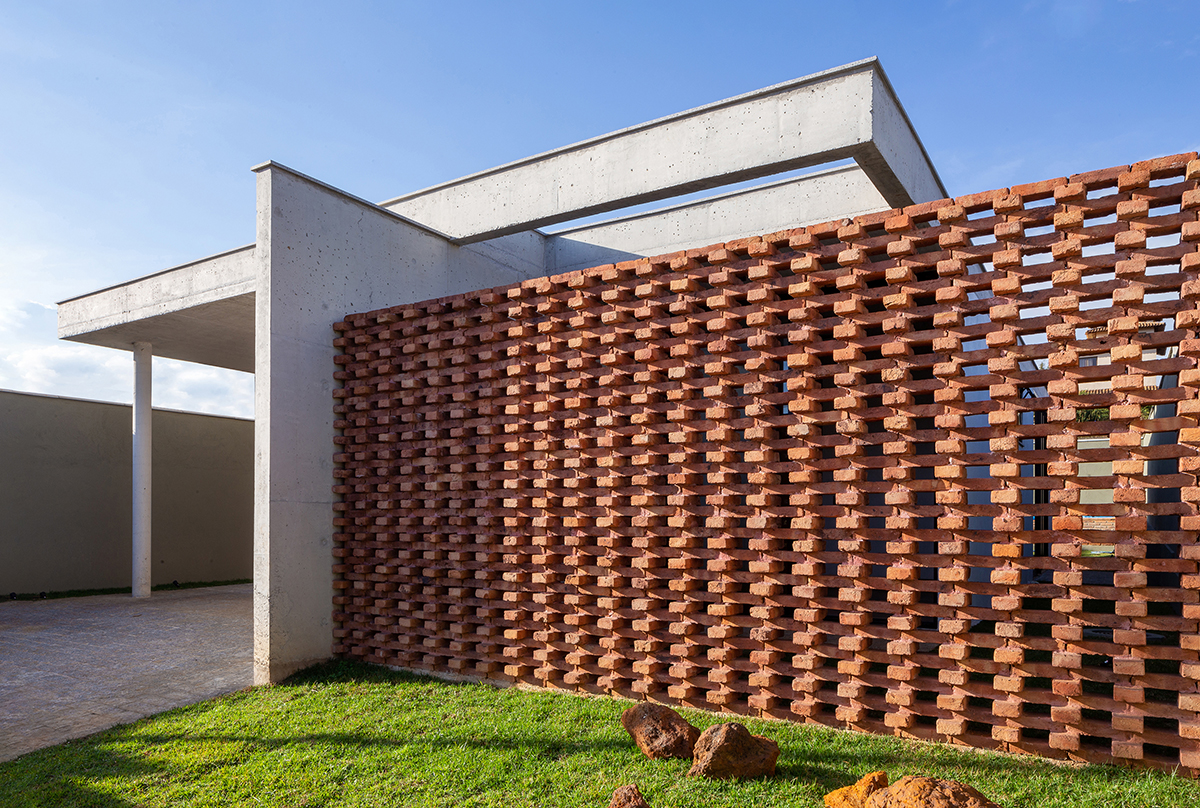 Os quartos também são integrados à área externa, em pátios menores, através do uso de portas de correr ao invés de janelas. Para resguardar a varanda do quarto voltado para a rua, foi criada uma parede vazada com uma paginação de tijolos maciços intercalados.