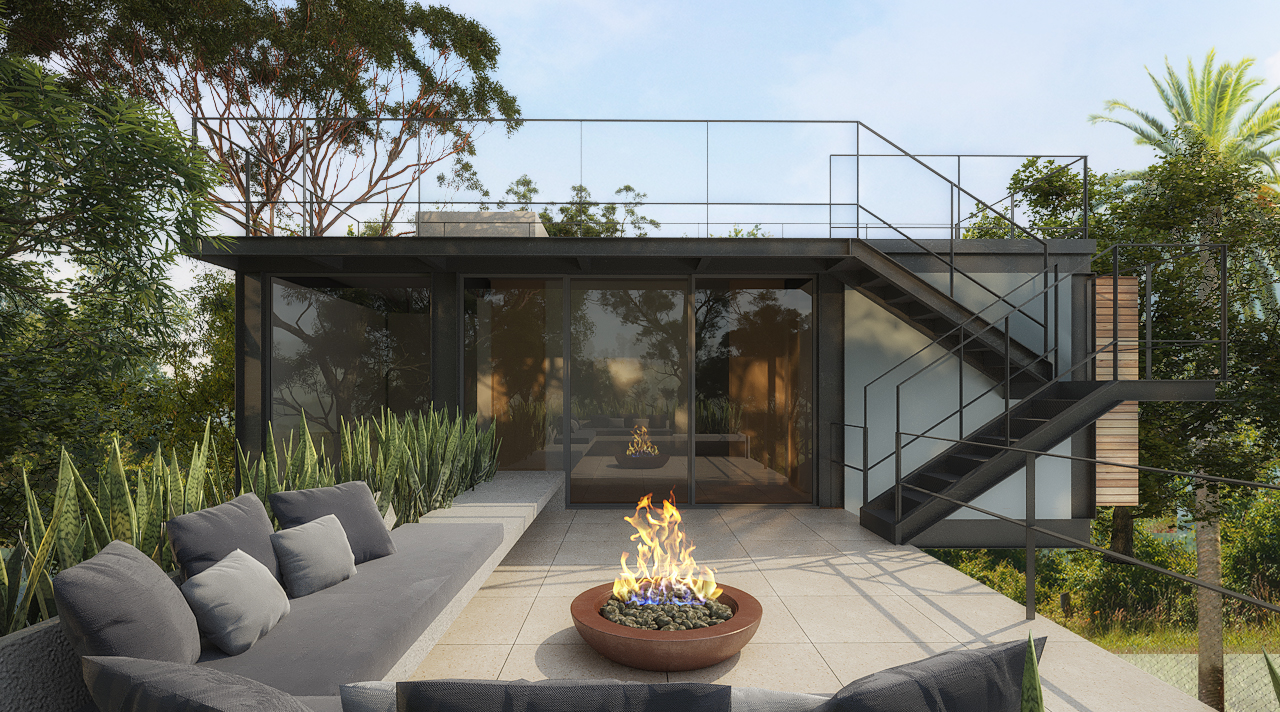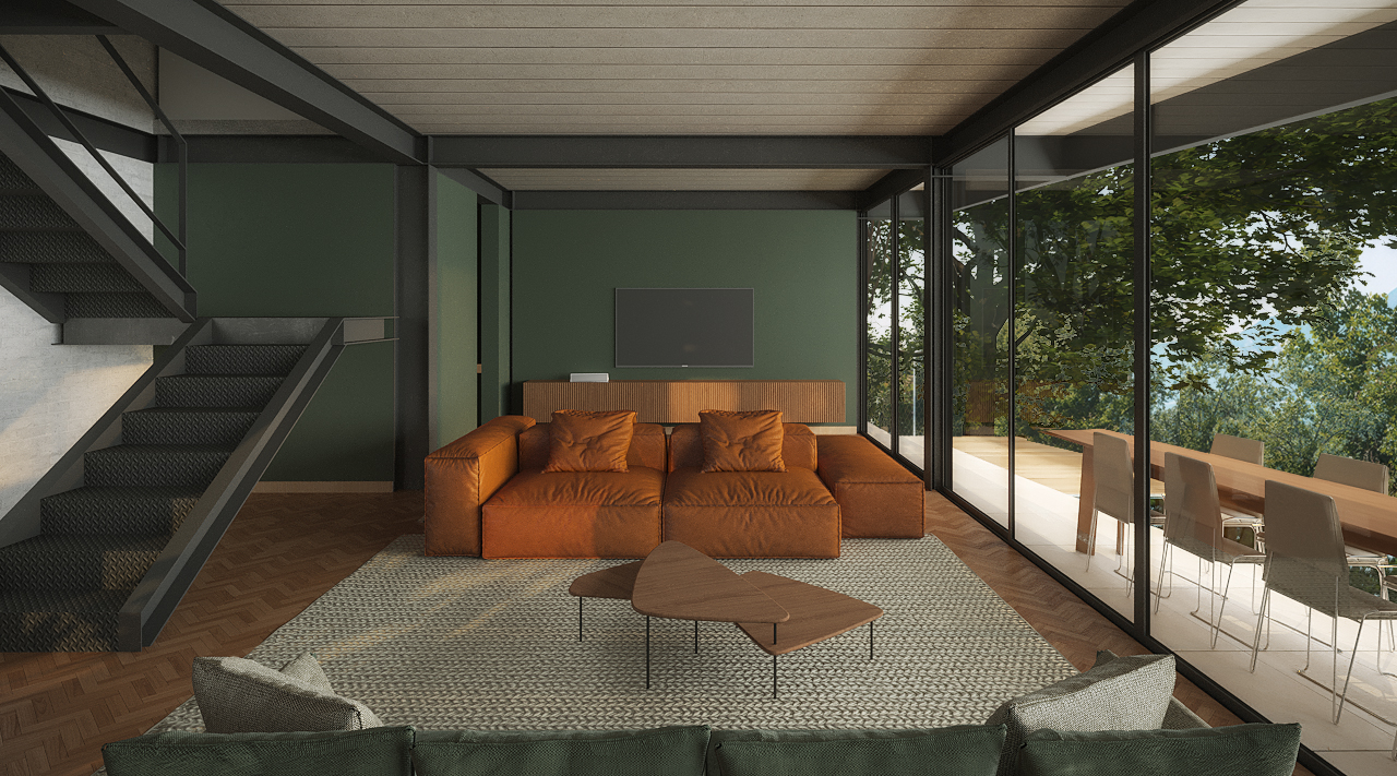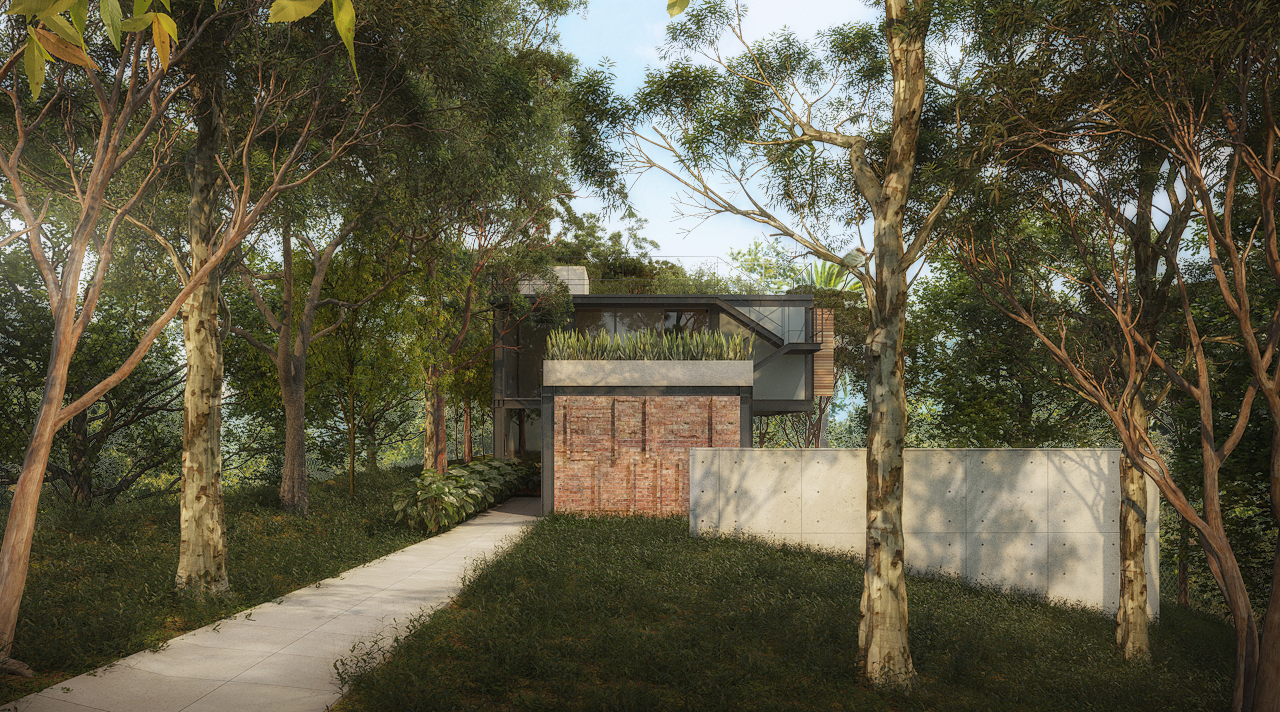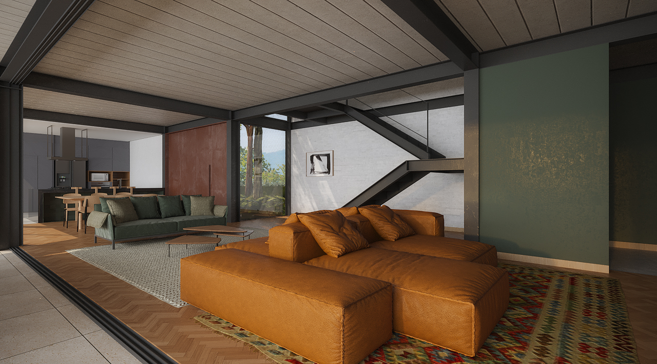 A residência se organiza a partir da implantação da piscina com maior insolação possível e de pontos fundamentais da construção metálica como: Leveza, Precisão, Estética Própria, Fabricação, Montagem e Transportabilidade.
