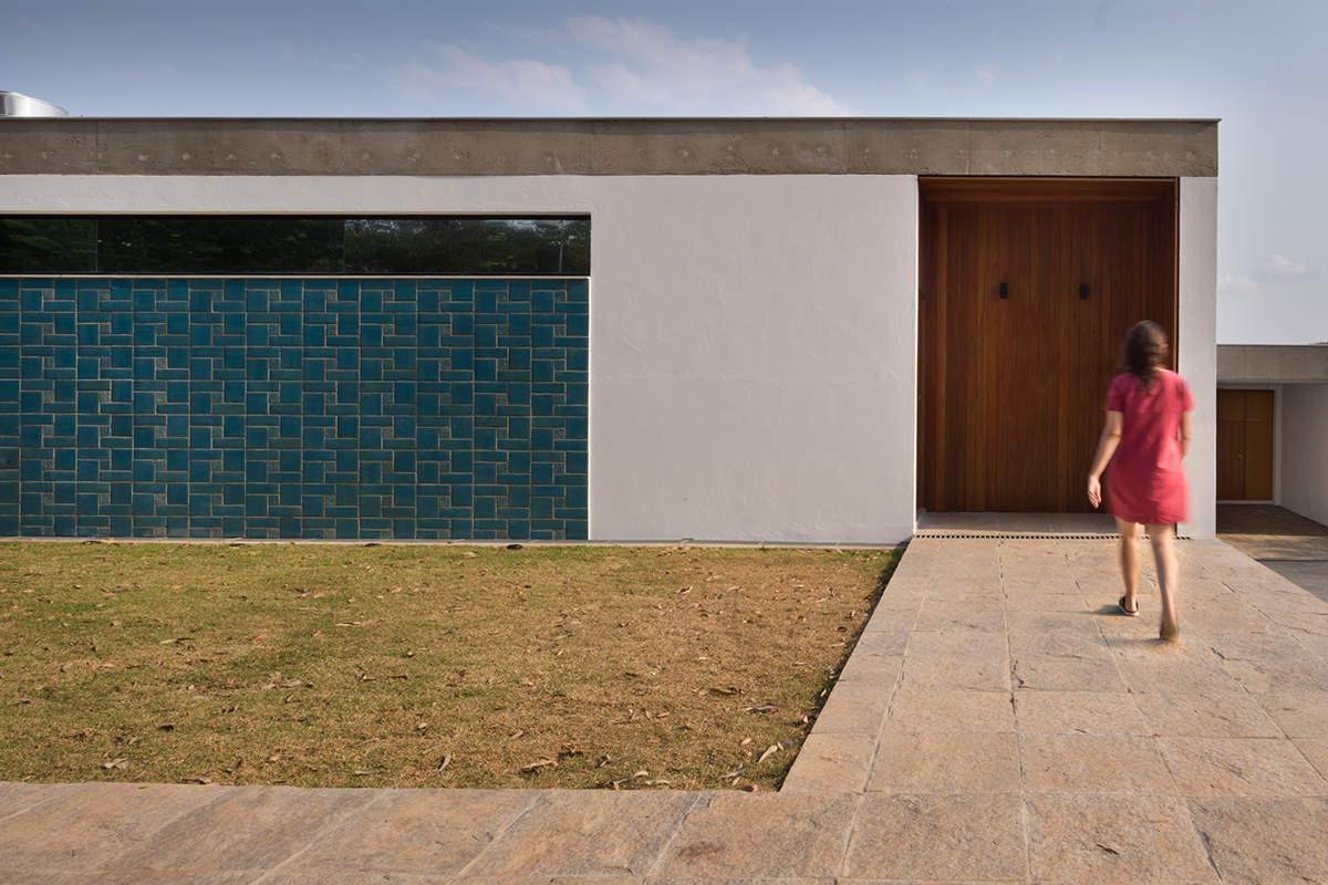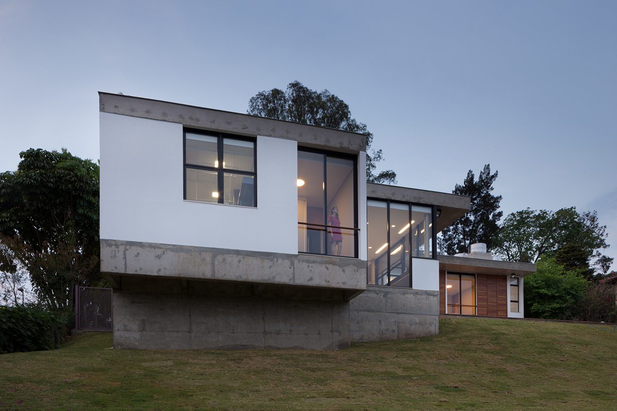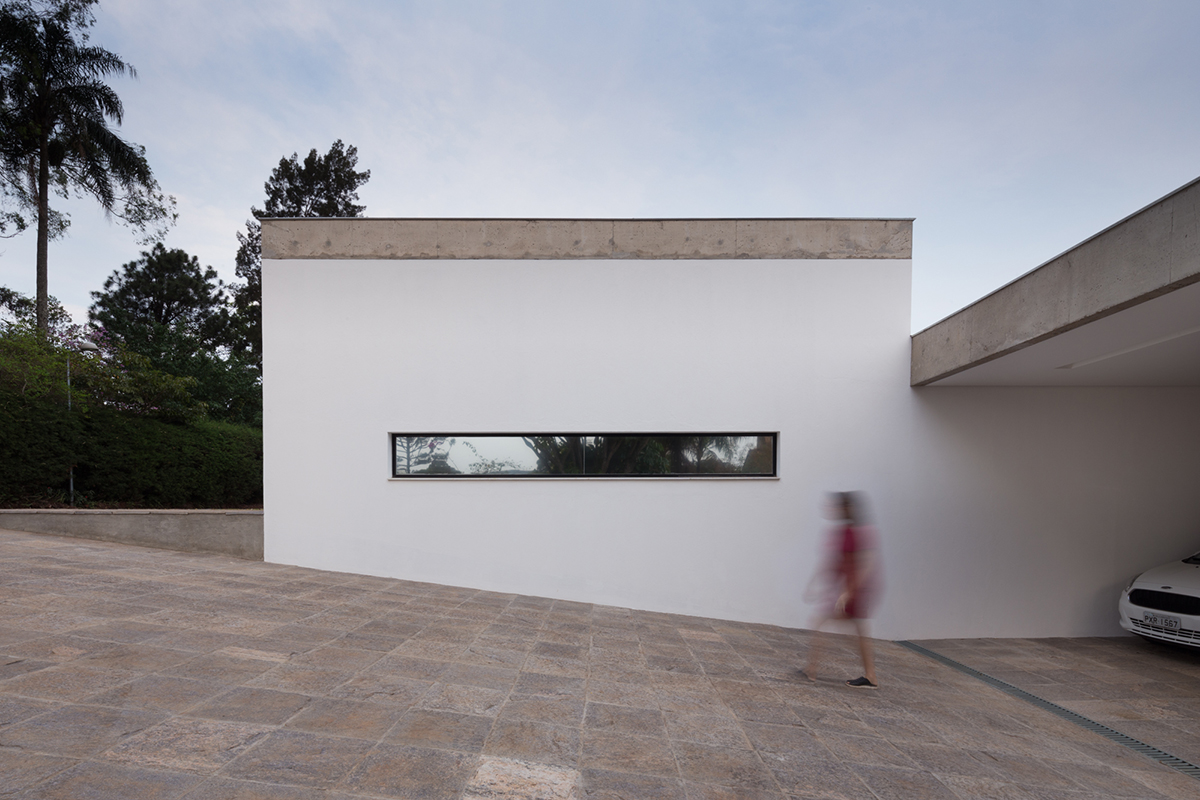 Os materiais e elementos empregados, o acabamento da laje e embasamento em estado natural/bruto buscam ressaltar a simplicidade com que a obra busca se relacionar com o terreno.