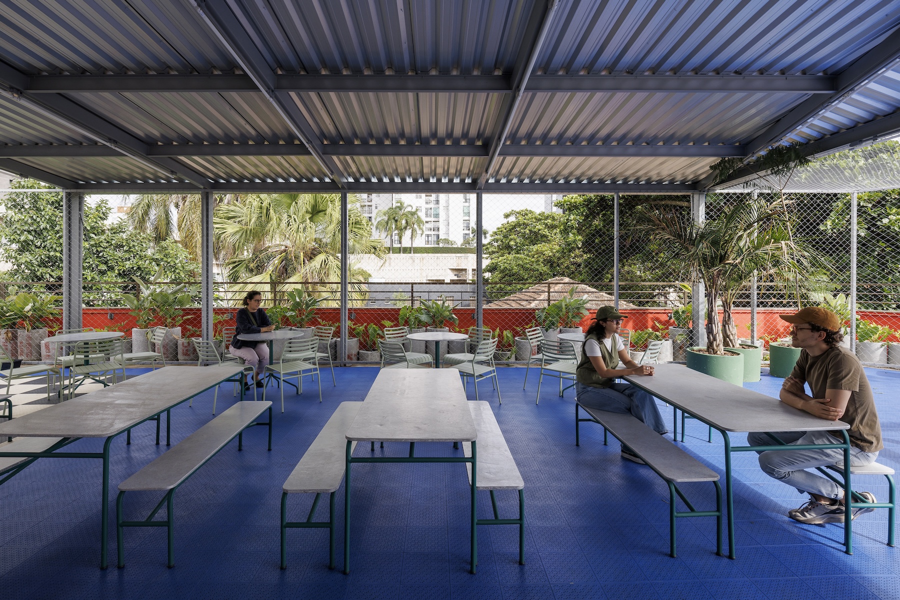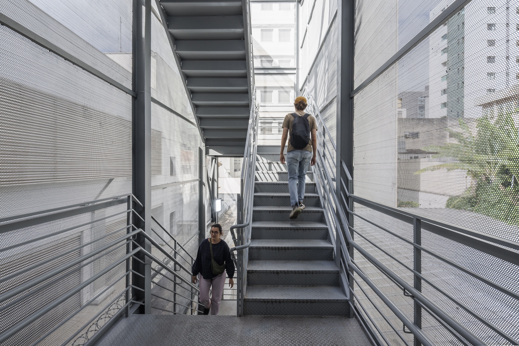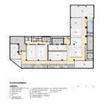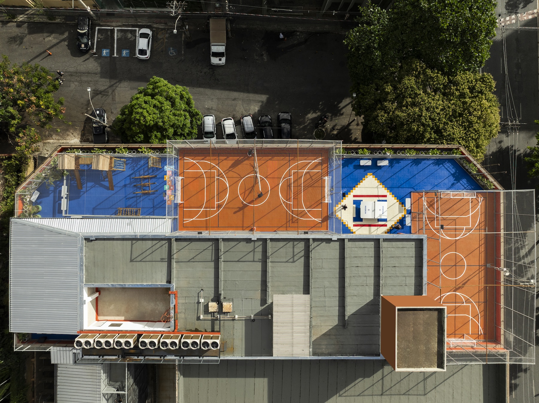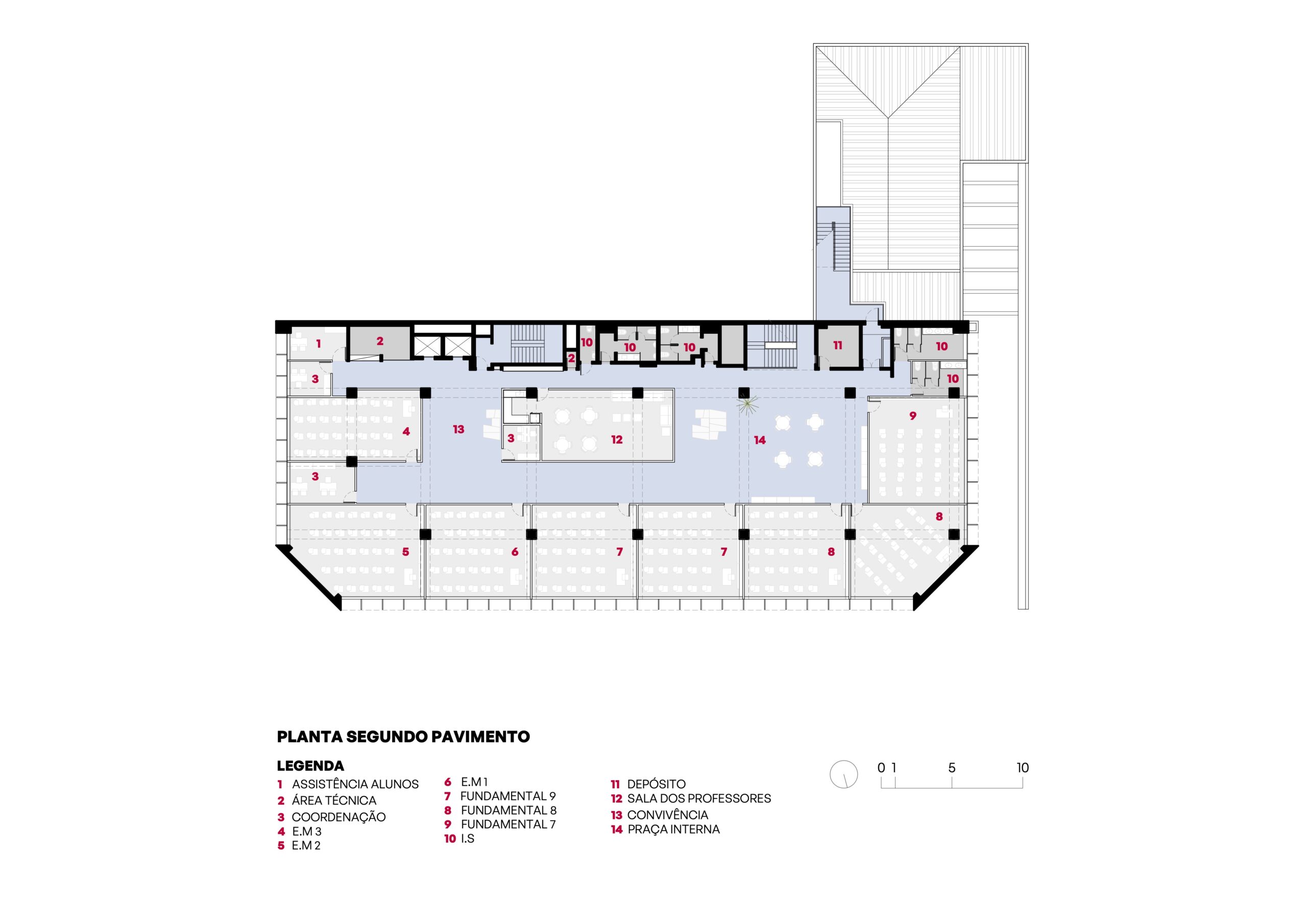 Por fim, o terraço foi transformado em uma praça esportiva e de convivência, com vista para a cidade e ampla incidência de luz natural — um verdadeiro espaço de respiro e integração. O projeto não apenas respeitou e valorizou a história do edifício, como também trouxe inovação, funcionalidade e um novo olhar sobre o papel da arquitetura no ambiente escolar. O resultado é uma escola dinâmica, inspiradora e profundamente conectada com a cidade e com quem a habita.