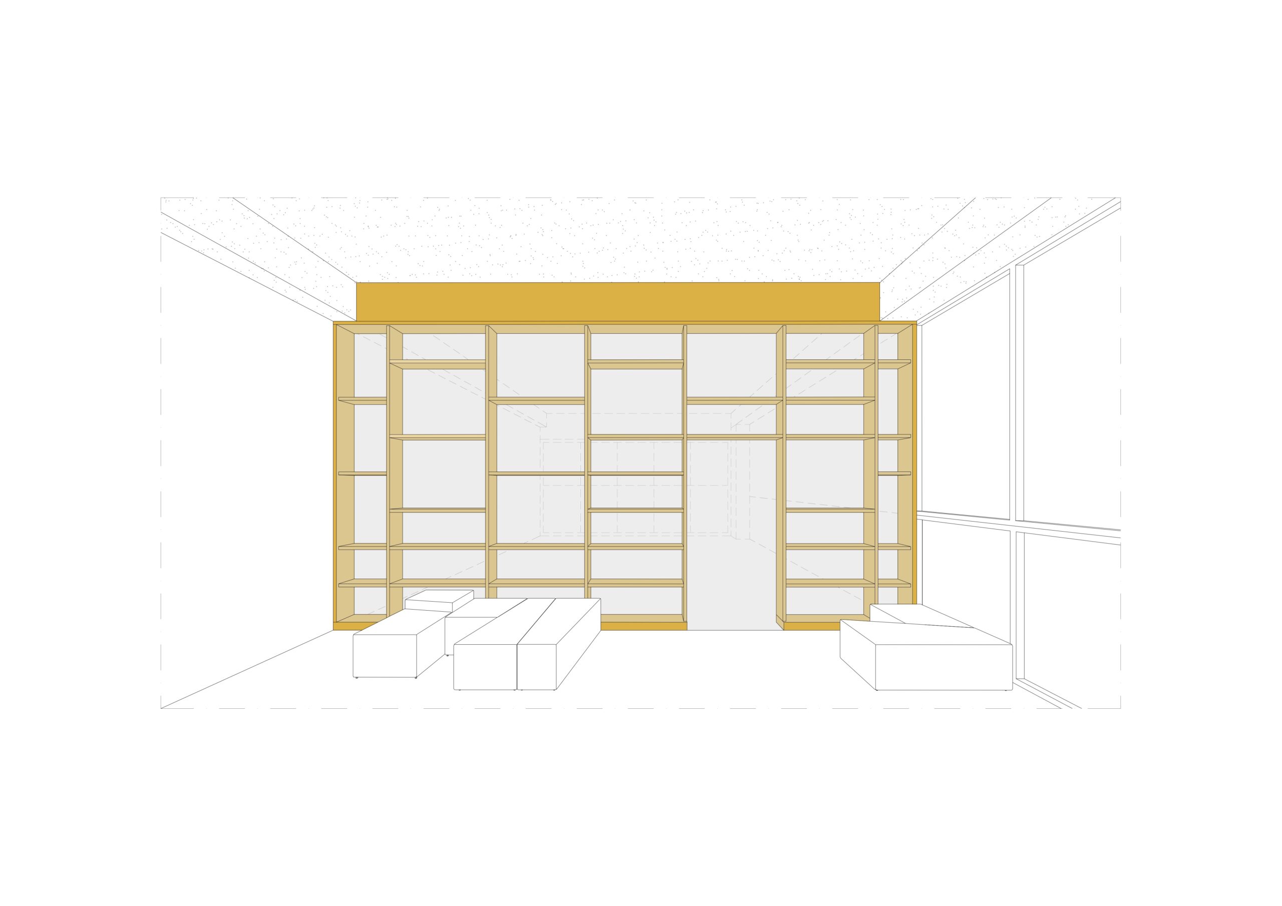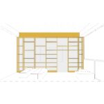 O bloco do ensino infantil conta com um acesso independente, em destaque por seu volume azul. O espaço inclui rampas acessíveis e platôs onde as crianças podem brincar, cuidar das hortas e desfrutar do sol em segurança. A biblioteca se destaca pela marcenaria amarela que a delimita, criando uma transição visual e física com a área de circulação do pavimento. O mobiliário acolhedor convida alunos e colaboradores ao descanso e à leitura durante os intervalos.