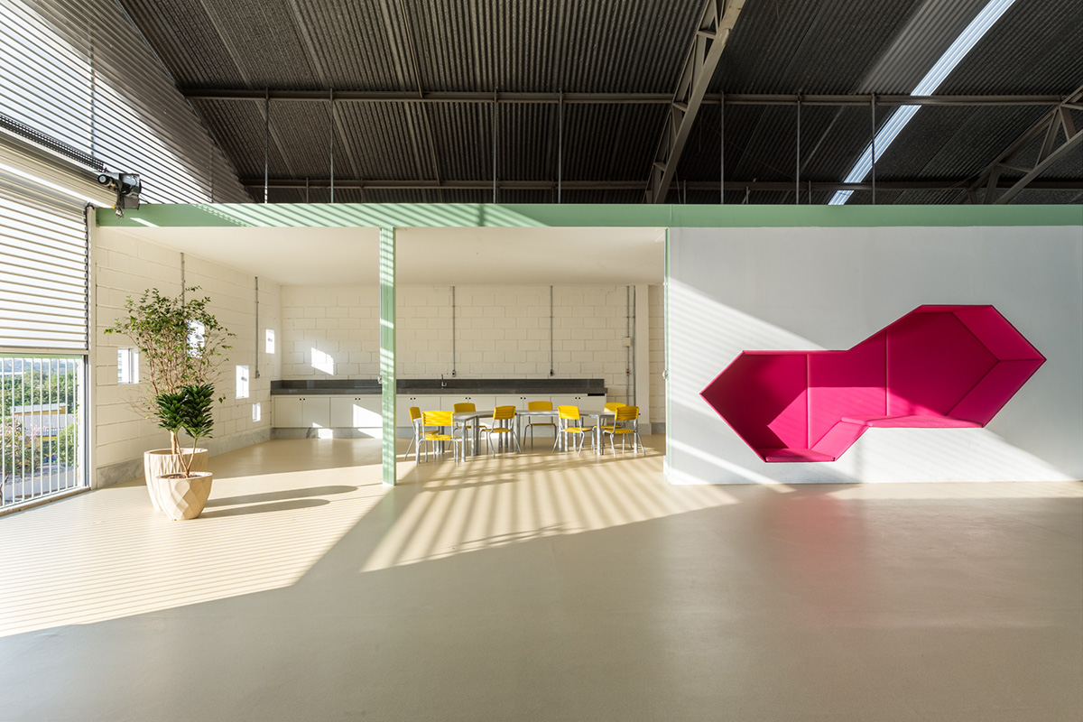 O projeto foi assentado em um galpão existente, configurando uma transformação de uso industrial para educacional. Uma escolha pouco convencional mas com características interessantes por se tratar de um vão livre amplo, pé direito alto e a pouca compartimentação do espaço.