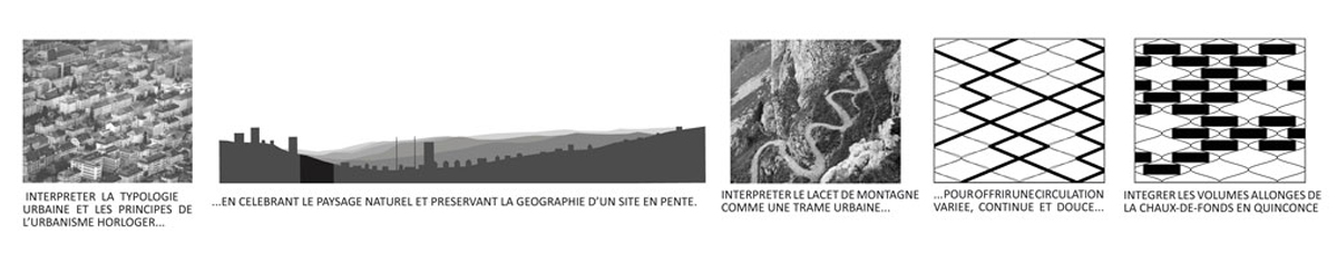 O espírito do projeto consiste na interpretação dessa urbanização tradicional da cidade que se estende ao longo do vale para “colonizar” uma morfologia natual montanhosa complexa.