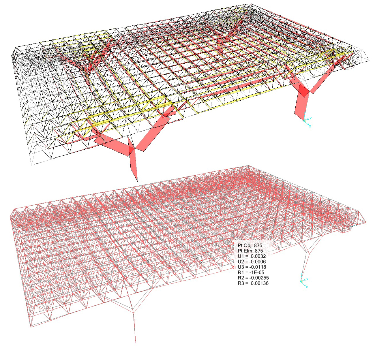 A opção pela construção metálica é justificada pela racionalização construtiva relativo aos elementos que compõe a estrutura, o tempo de montagem além de viabilizar poucos apoios para o desenvolvimento dos vãos. Desse modo, o desempenho das atividades e integração com a paisagem possui mínimas obstruções.