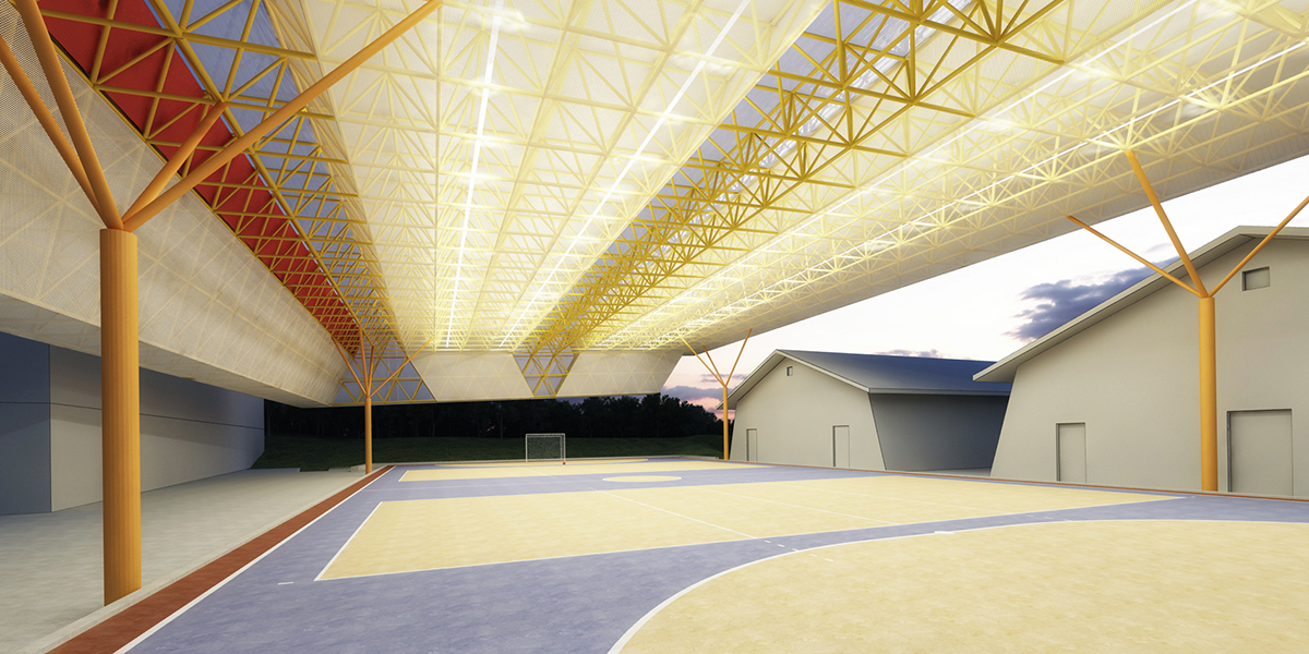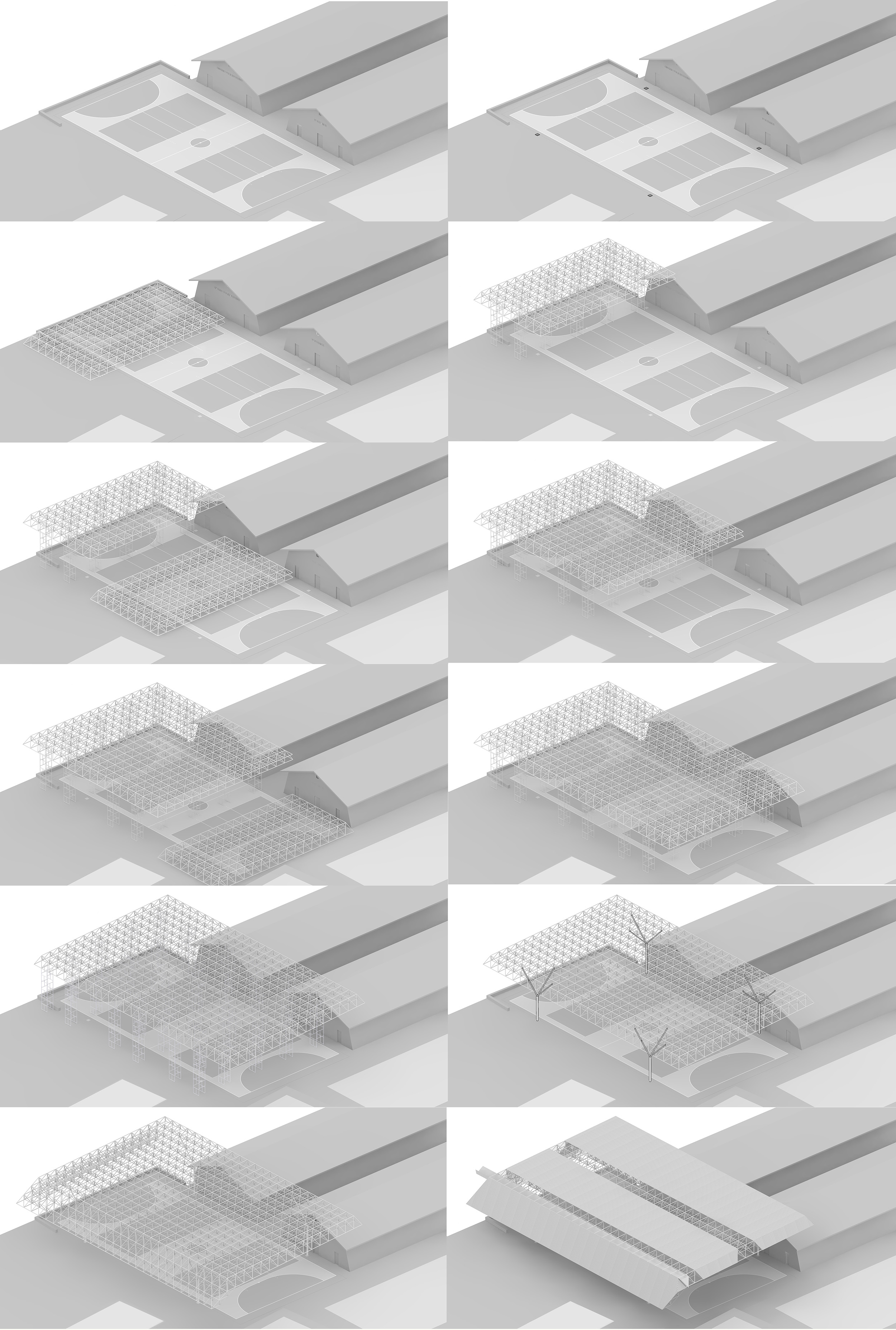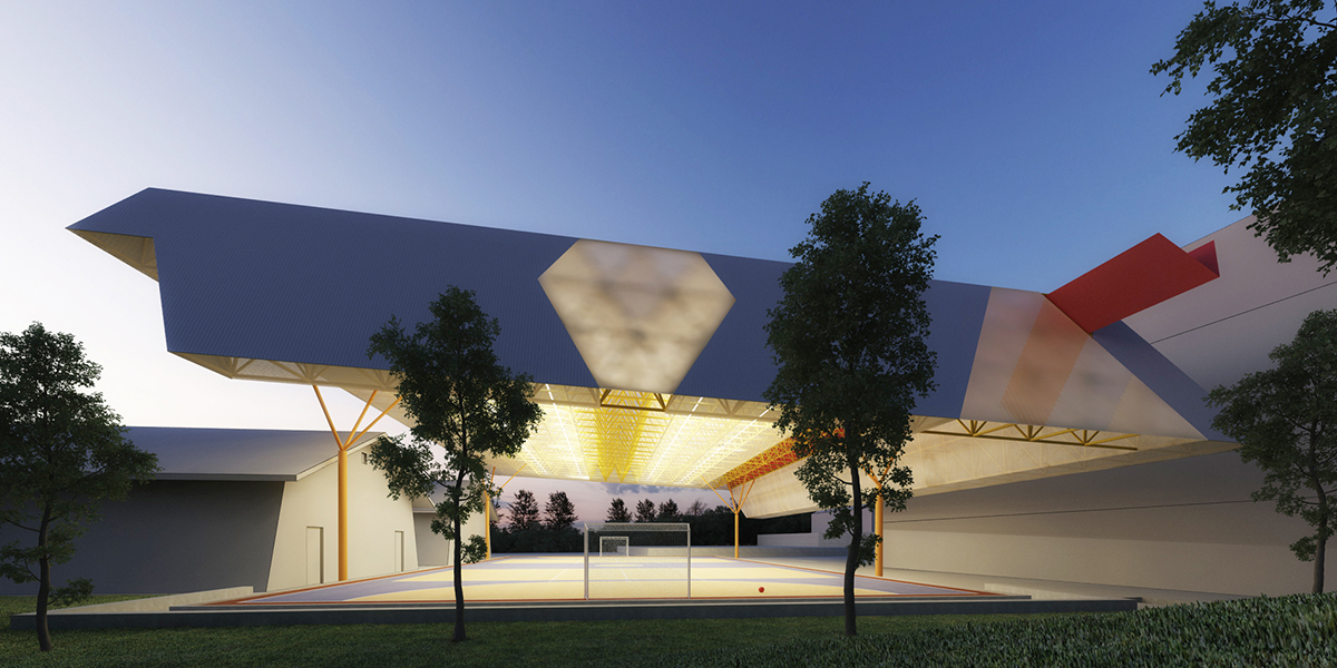 A proposta consiste no desenho de uma cobertura para uma quadra com dimensões de 21×42 metros dentro de um campus em Ouro Preto, MG.
