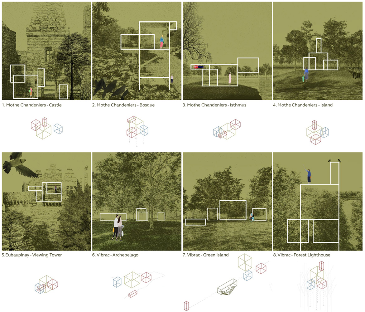 The design process began by questioning the kind of relationship that we would like to establish with the trees, challenging the validity of propagating the tree house as the archetype that we know. The concept removes the dependency on the tree, freeing it from our impositions and desires, and formulates an intention to cohabitate and not to conquest. The intention is to conceive an architecture that could generate a generous dialogue with the trees, producing space out of these relationships. The trees are as much a spectacle to be revered and contemplated as the ruins that characterize the three sites. The ruins are a testament of time, constantly reminding us of the fallacy of the concept of permanence and decay of matter. The trees are a testament of time that reminds us of the complexity of life and persistency of nature.